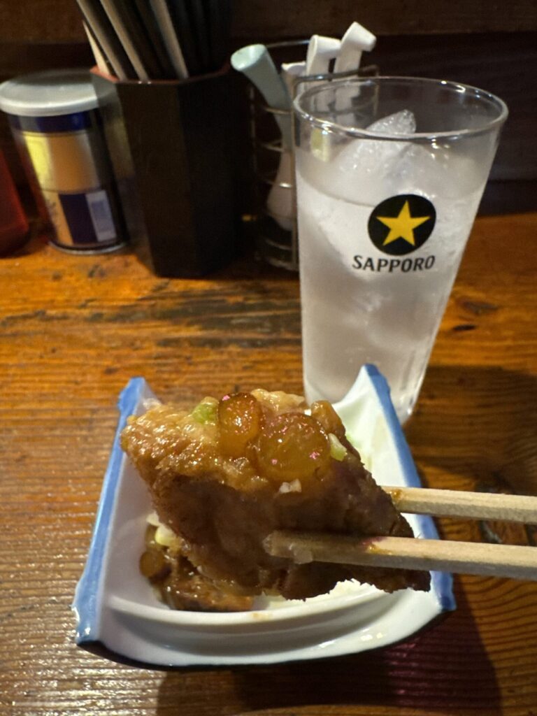 さすがは煮込酒場、なんと豚バラ軟骨煮がお通しで着皿。