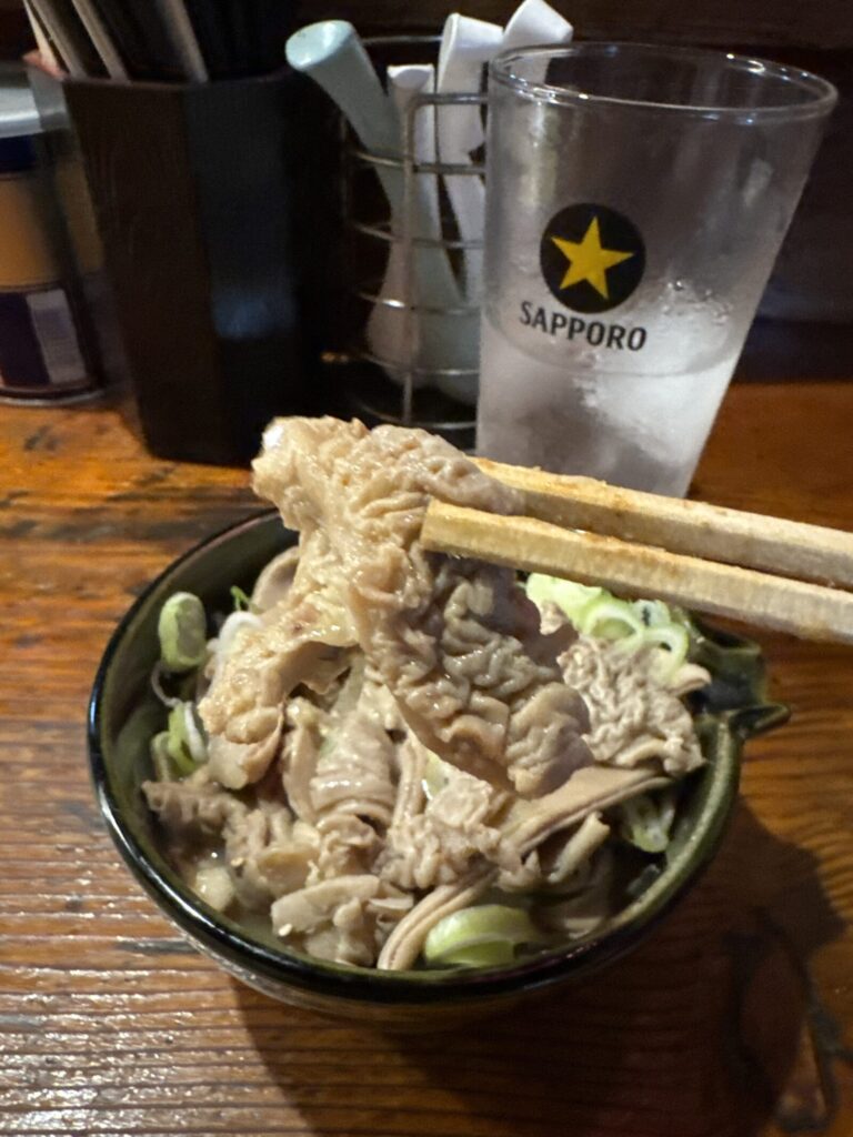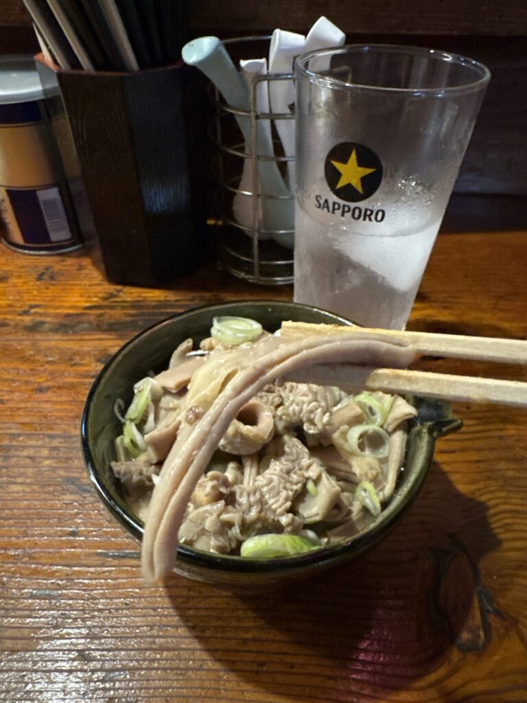 1軒目で馬刺しを堪能したのだから2軒目は馬もつ煮が自然の流れだ。
