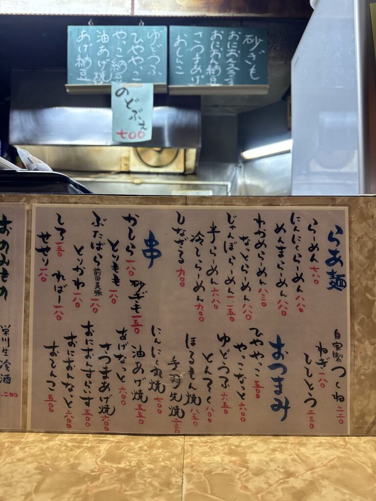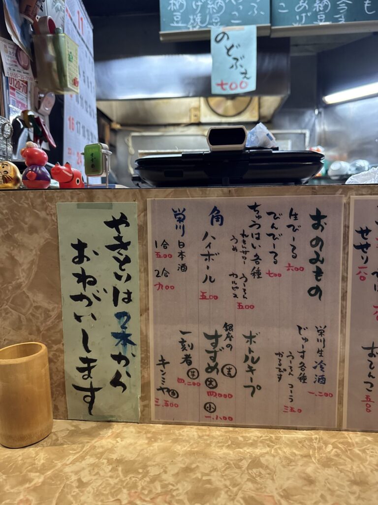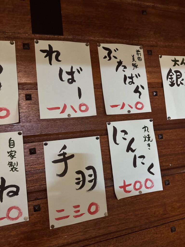 ツマミラインナップはどんな感じかなと手元のメニューや黒板メニューをやおら眺める。