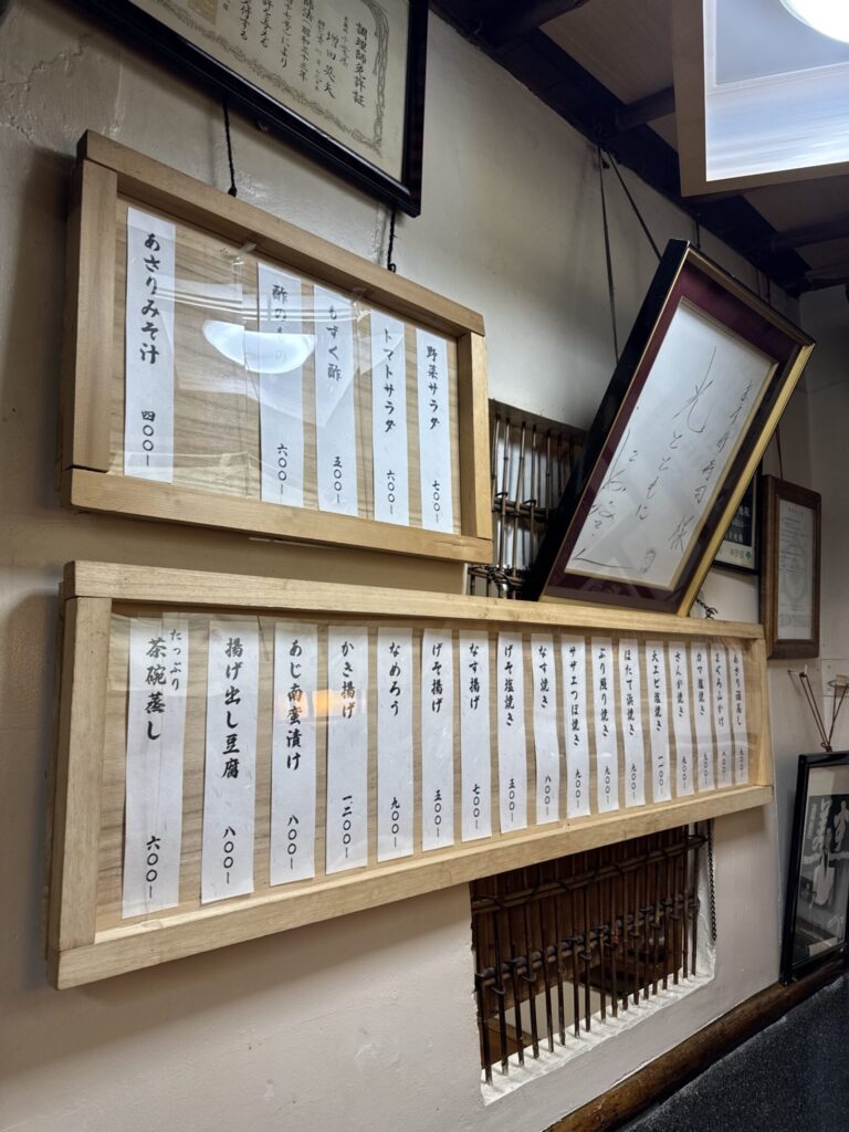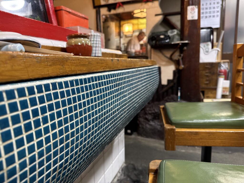 ガラガラっと戸を滑らせエントリーすると、豆タイルのカウンターに船底天井と、古き良き日本建築の雰囲気が漂っていた。