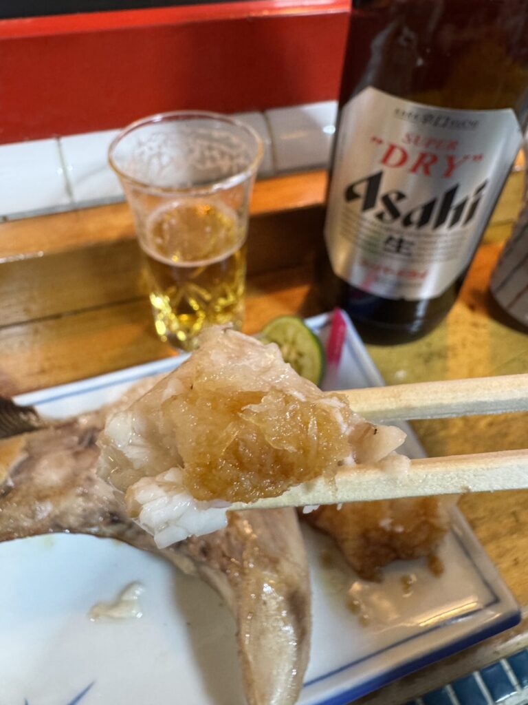 ふんわり焼き上げられたブリカマがこれまた絶妙な塩加減で、いつまでもビール片手にホジホジしていたいやつ。