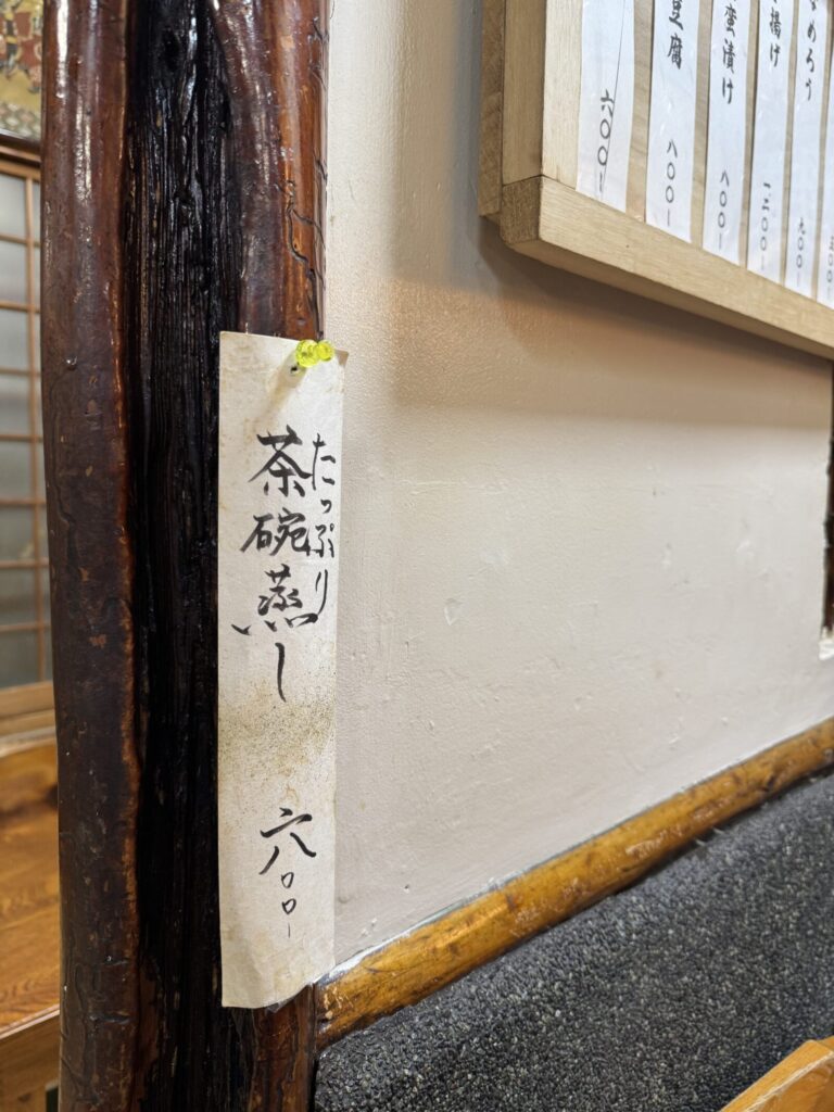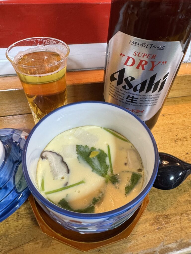 そんなエピソードにもまた鼻息を荒くしているとお待ちかねの茶碗蒸しがすぅーっと到着。