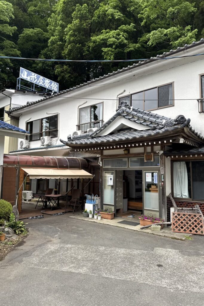 帰路ルートから少し外れた山あいに一軒の温泉宿をロック温。