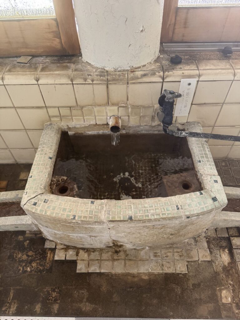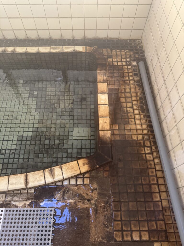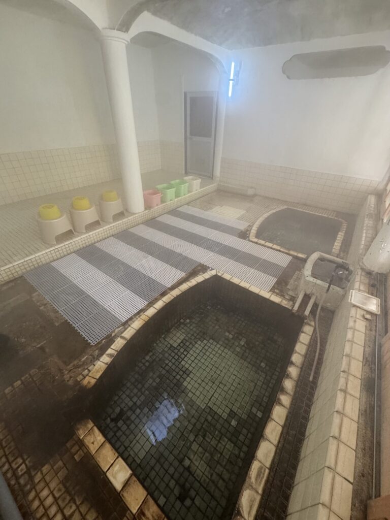 浴槽も湯の析出物でベッピンさんにお化粧をしてらっしゃる。
