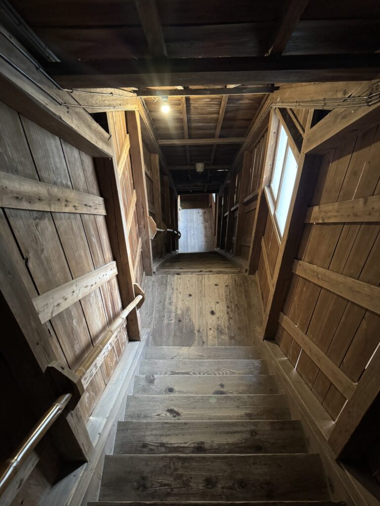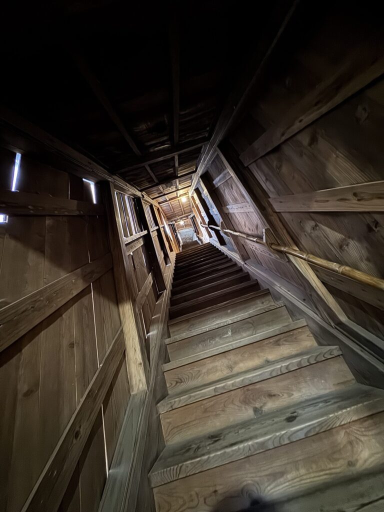今度はどこまでも深く吸い込まれそうな木造階段ゾーンが現れる。
